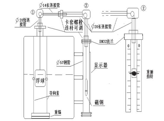 液位計(jì)是由浮子、牽引索、導(dǎo)向滑輪、重錘指針、顯示標(biāo)尺或磁性翻板等五部分組成。