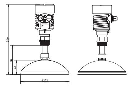 SKD58拋物面雷達物位計 SKD58拋物面雷達物位計測量最大距離可達80米。天線被進一步優(yōu)化處理,新型的快速的微處理器可以進行更高速率的信號分析處理,使得儀表可以用于如:反應釜或固體料倉非常復雜的測量條件。 原理 拋物面雷達物位計天線發(fā)射較窄的微波脈沖,經(jīng)天線向下傳輸,微波接觸到被測介質表面后被反射回來,再次被天線系統(tǒng)接收并將其傳輸給電子線路部分自動轉換成物位信號。(因為微波傳播速度極快,電磁波到達目標并經(jīng)反射返回接收器這一來回所用的時間幾乎是瞬間的) SKD58拋物面雷達物位計參數(shù) 應??用:固體料、過程容器或強粉塵易結晶、結露場合 測量范圍:80米 過程連接:螺紋、法蘭 介質溫度:-40~250℃ -60~400℃ 過程壓力:常壓 精??度:±15mm 頻率范圍:26GHz 防爆等級:Exb IIBT4 Gb 防護等級:IP67 信號輸出:4~20mA/HART(兩線/四線)RS485/Modbus SKD58拋物面雷達物位計外型尺寸圖 ![]() SKD58拋物面雷達物位計安裝 ![]() SKD58拋物面雷達物位計選型
