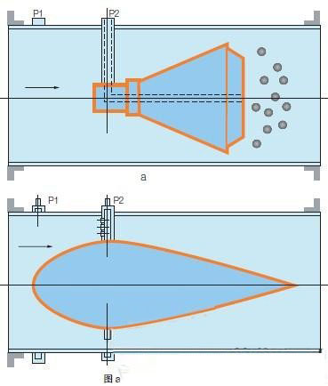 在同一密閉管道內(nèi),當(dāng)壓力降低時(shí),速度會(huì)增加,當(dāng)介質(zhì)接近錐體時(shí),其壓力為P1,在介質(zhì)通過(guò)錐體的節(jié)流區(qū)時(shí),速度會(huì)增加,壓力會(huì)降低為P2,如圖一所示,P1和P2都通過(guò)V型錐形流量計(jì)的取壓口引到差壓變送器上,流速發(fā)生變化時(shí),差壓值會(huì)隨之增大或減小。也就是說(shuō)對(duì)于穩(wěn)定流體,流量的大小與差壓平方根成正比。當(dāng)流速相同時(shí),錐體節(jié)流面積越大,則產(chǎn)生的差壓值也越大。V型錐流量計(jì)屬精度、高穩(wěn)定性的新型差壓式流量?jī)x表。