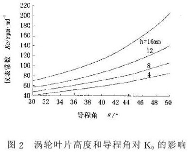 液體渦輪流量計固有儀表常數(shù)K0主要與渦輪傳感器 結(jié)構(gòu)參數(shù)有關(guān) 圖(1), K0可按下式計算