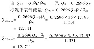 其流量上限FH應(yīng)為金屬轉(zhuǎn)子流量計刻度上限所對應(yīng)的標準狀態(tài)下的氧氣流量,因為金屬轉(zhuǎn)子流量計的刻度為標準狀態(tài)下空氣標注,所以必須將其轉(zhuǎn)換為標準狀態(tài)下氧氣流量。