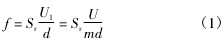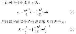 式中: f 為旋渦頻率; Sr為斯特勞哈爾數; m 為旋渦發(fā)生體兩側弓形面積與管道橫截面面積之比,不可壓縮流體中,由于流體密度 ρ 不變,由連續(xù)性方程可得到 m = U/U1。