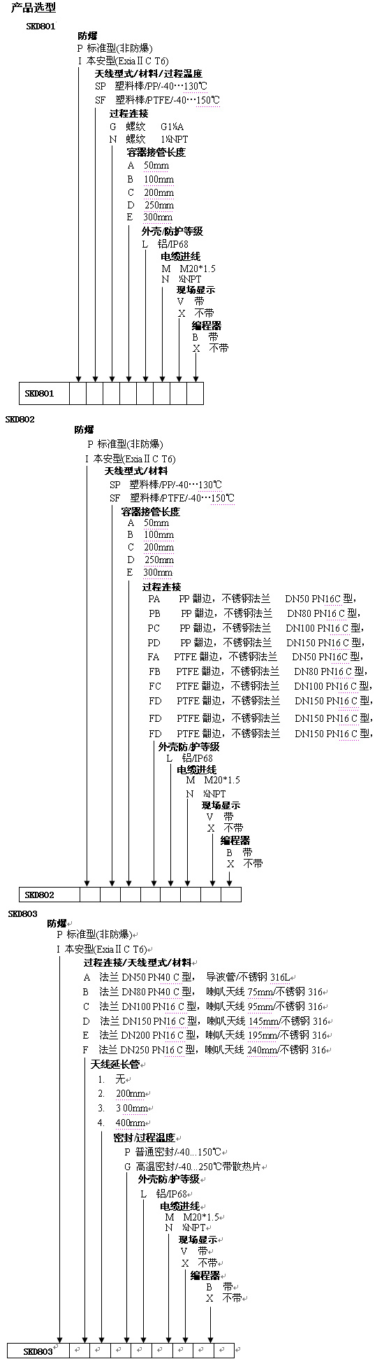 過(guò)程連接 SKD801 (PP,PTFE天線) :G1-1/2 316L不銹鋼,:
