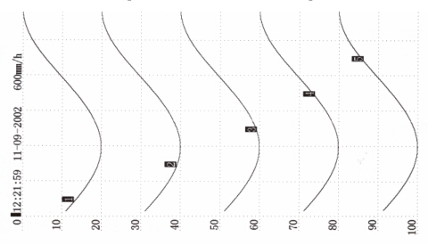 •每隔100mm打印一次刻度值、當前時間和走紙速度